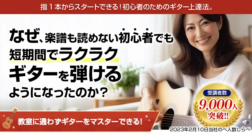 また、この講座は弾き語り用です。ご自分で歌を歌いながらギターで伴奏をするという形です。その分ギターが簡単ですので、弾き語りは最も初心者向けの形態だと思われます。