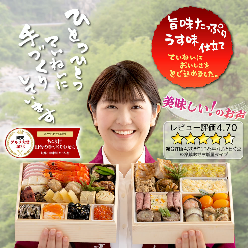 ちこり村本店が取り扱うおせちは、**楽天グルメ大賞**を何度も受賞するなど、その品質と顧客満足度の高さが証明されています。